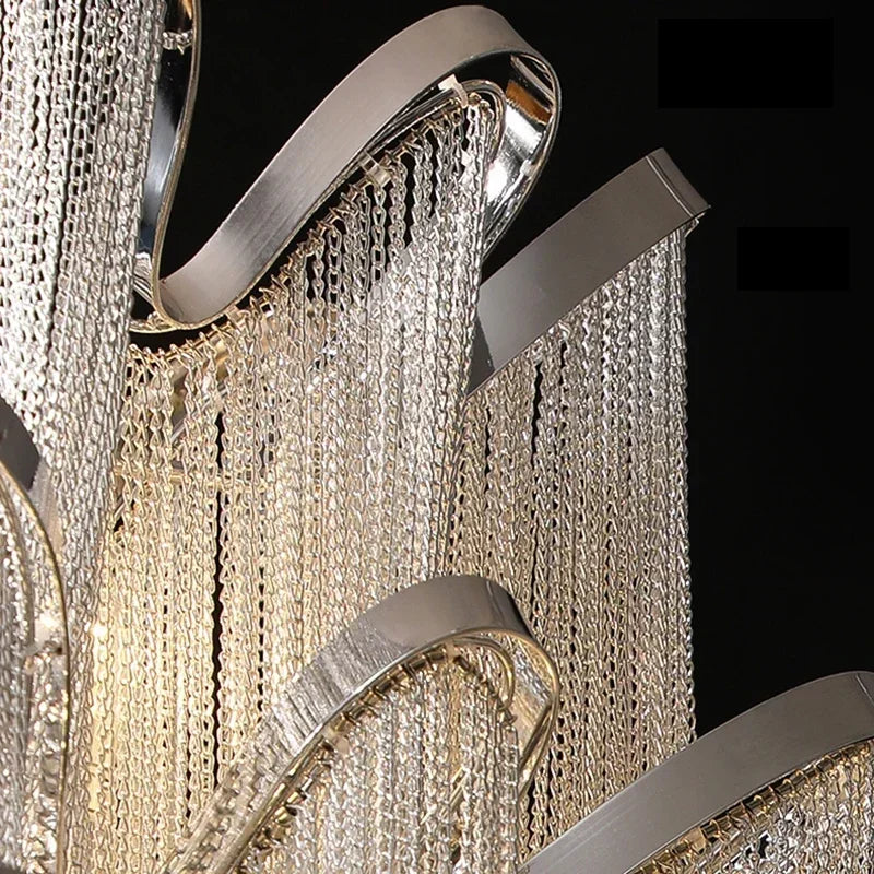 Le lustre à LED pampilles se distingue par son allure unique et sophistiquée. Fabriqué en aluminium avec une finition en chrome poli, il reflète la lumière de manière éclatante tout en ajoutant une note de modernité à votre décoration. Les pampilles en métal, suspendues avec soin, créent un jeu de lumière captivant qui attire l'œil et sublime votre espace. Ce luminaire est idéal pour ceux qui souhaitent réchauffer leur intérieur tout en conservant une esthétique minimaliste et contemporaine.