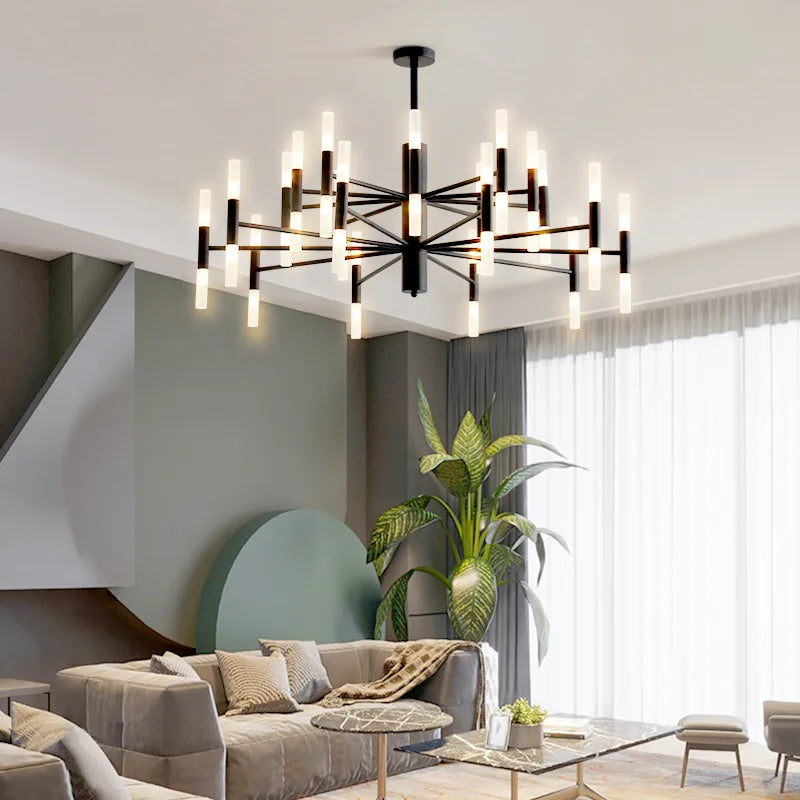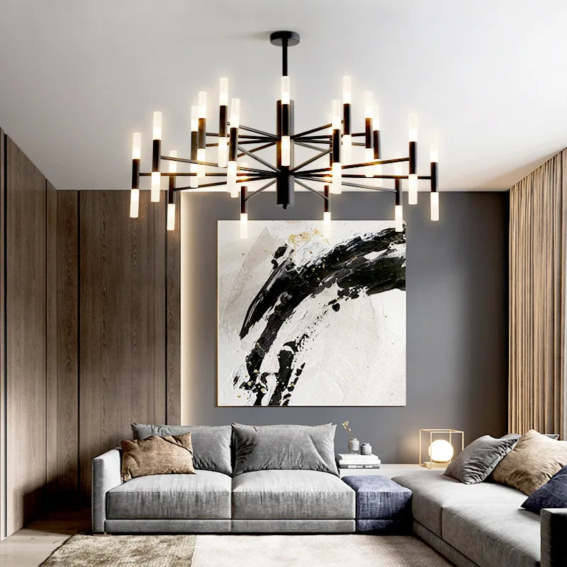 Le lustre art déco moderne se distingue par ses lignes épurées et son esthétique sophistiquée. Sa finition en noir et or apporte une touche de luxe, tout en s’adaptant harmonieusement à divers styles décoratifs, qu'ils soient industriels, scandinaves ou contemporains. Ce luminaire suspendu est idéal pour illuminer des espaces tels que le salon, la salle à manger ou même la chambre.