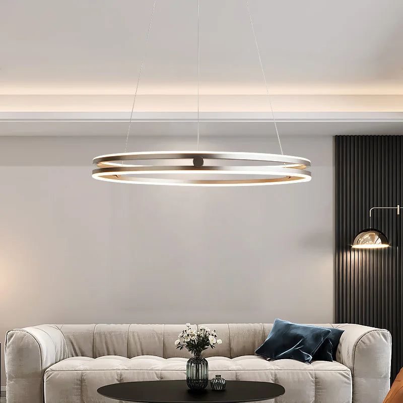 Découvrez le lustre circulaire moderne, un luminaire qui transformera vos espaces de vie grâce à son design élégant et contemporain. Que ce soit dans un salon, une chambre à coucher ou un restaurant, ce lustre devient rapidement le point focal de votre décoration intérieure. Conçu pour les amateurs de style minimaliste, il allie fonctionnalité et esthétique, apportant une touche de sophistication à tout environnement.