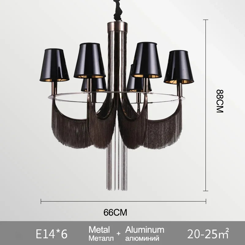 Ses dimensions généreuses en font un choix idéal pour des espaces variés. Que ce soit dans une salle à manger spacieuse où il pourra briller au-dessus de la table, ou dans une entrée majestueuse qui nécessite une pièce maîtresse, ce lustre répondra parfaitement à vos attentes. Les détails de la conception, comme les pampilles en tissu qui ajoutent une touche de sophistication, en font un choix parfait pour un mariage ou un événement spécial.