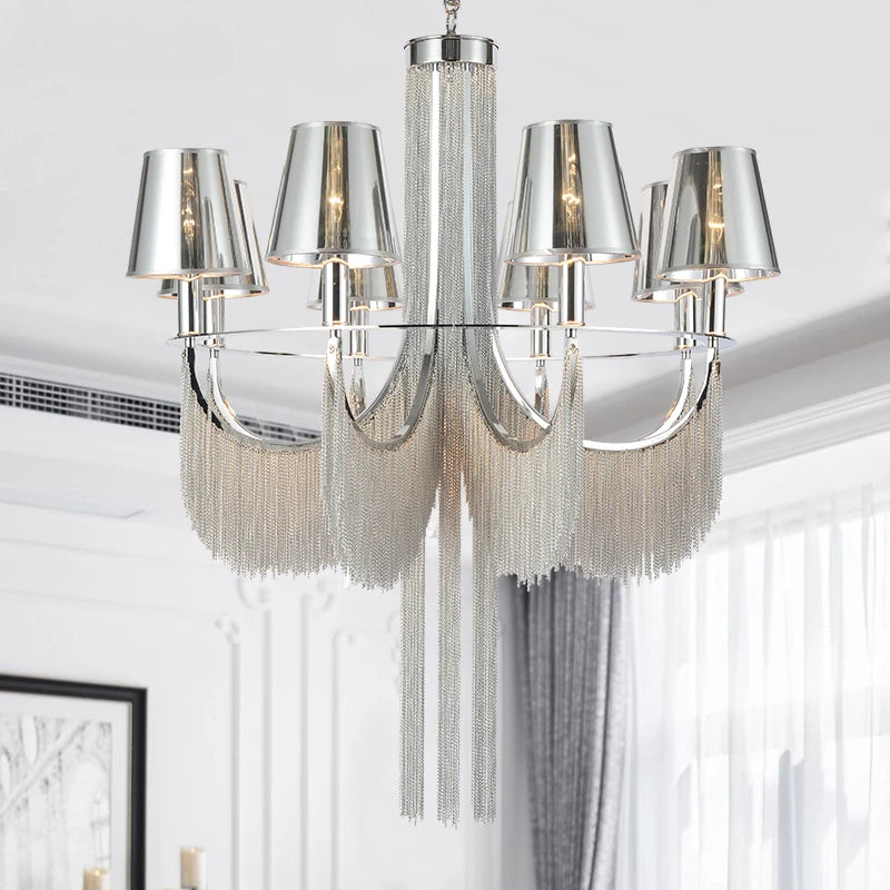 Le lustre est doté d'un fini en chrome poli qui reflète la lumière de manière spectaculaire, créant des jeux d'ombre et de lumière qui hypnotiseront vos convives. Sa structure en aluminium assure une durabilité exceptionnelle tout en maintenant une légèreté qui facilite son installation. Que vous organisiez un mariage, un dîner formel ou une simple réunion entre amis, ce lustre saura s'adapter et sublimer votre événement.