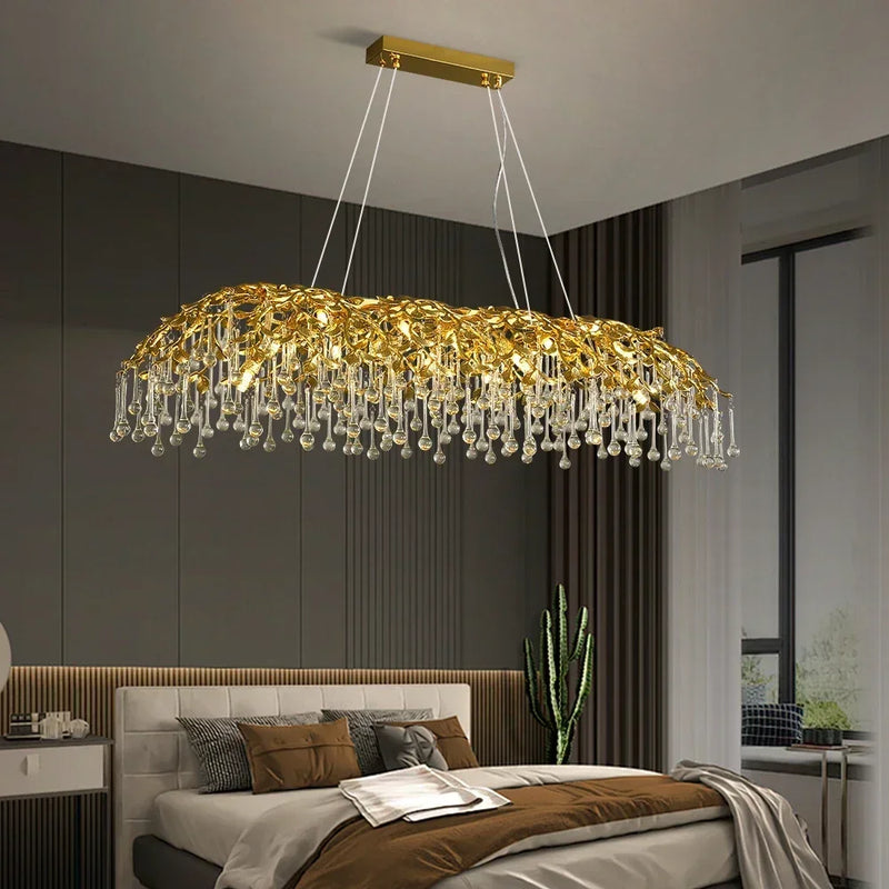 lustre en cristal de luxe design goutte de pluie élégant