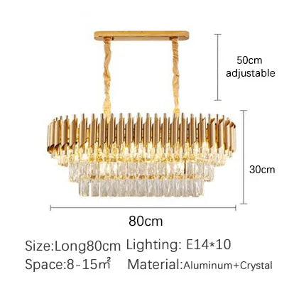 Ce lustre est conçu avec des matériaux de haute qualité, notamment du cristal, qui lui donne un aspect brillant et luxueux. Il est équipé de 10 à 15 sources lumineuses qui illuminent une surface de 15 à 30 mètres carrés. Ces lumières sont idéales pour éclairer un salon, une salle à manger, une chambre ou même une salle d'étude. La couleur de l'abat-jour est disponible en noir ou en or, pour s'adapter à tous les styles d'intérieur. De plus, ce lustre est doté d'un interrupteur tactile pour un allumage facile et rapide.