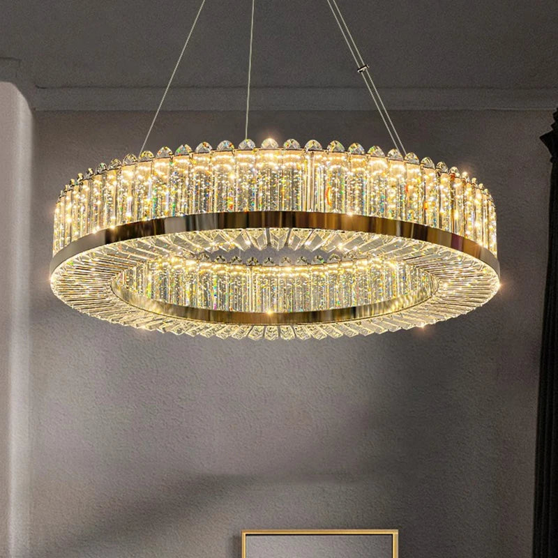 Lustre moderne en cristal avec lampes led suspendues luxueuses
