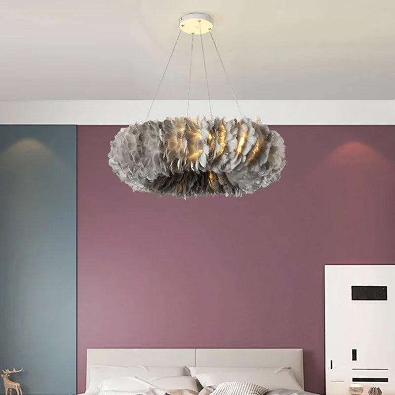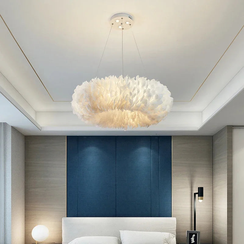 Lustre nordique moderne avec plumes led pour décoration intérieure