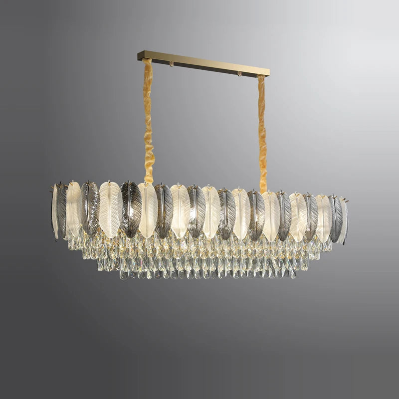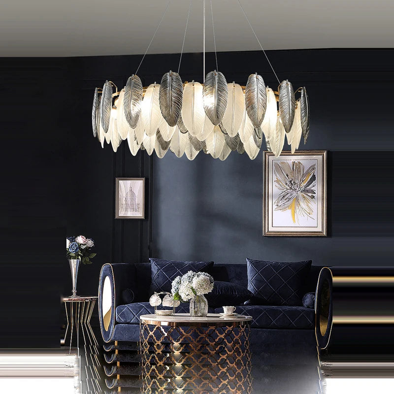 Nom du produit | Lustre suspendu led art déco avec plumes blanches et grises |