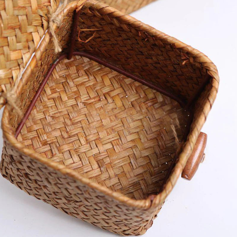 Panier de rangement en algues tissé à la main avec couvercle