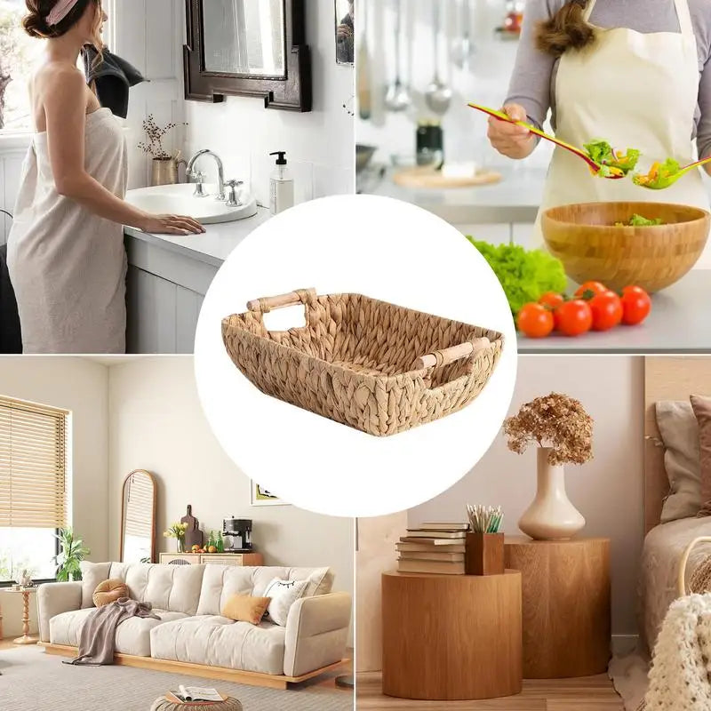 Le panier en jacinthe d'eau n'est pas seulement un élément décoratif ; c'est également un accessoire de rangement extrêmement pratique. Grâce à ses anses solides, il est facile à transporter d'une pièce à l'autre. Que vous souhaitiez le déplacer vers la table lors d'un dîner entre amis ou l'amener dans le salon pour un goûter en famille, sa légèreté et sa maniabilité en font un compagnon idéal pour toutes vos activités.