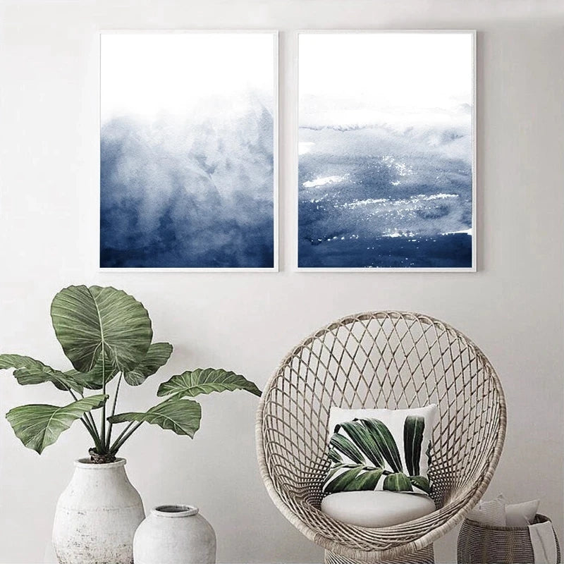 Imaginez-vous dans votre salon, où la lumière naturelle illumine les nuances de bleu de cette peinture aquarelle. Les formes abstraites évoquent les mouvements de l'eau, créant une sensation d'évasion et de tranquillité. Accrochée au-dessus de votre canapé, cette œuvre devient rapidement le point focal de la pièce. Elle s'accorde parfaitement avec des couleurs neutres ou des tons plus vifs, tout en se mariant avec des styles variés, qu'ils soient scandinaves, modernes ou industriels.