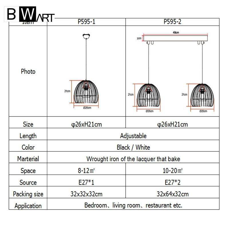 Nom du produit | Suspension à led design en forme de cage à pâles arrondies birdcage |