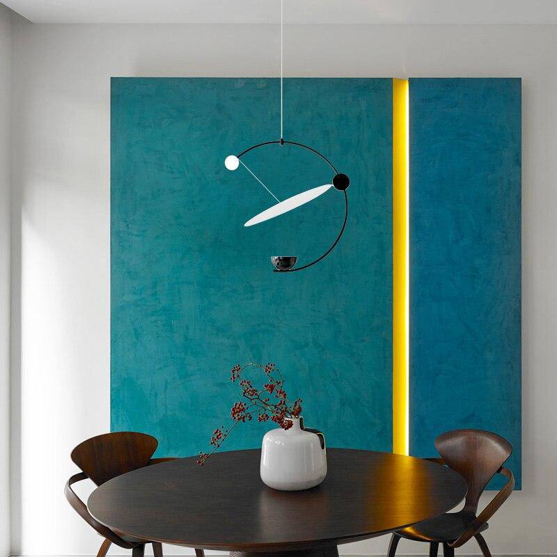 Suspension design LED avec arc de cercle noir et boule lumineuse Creative