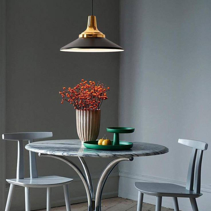 Suspension design style industrielle colorée avec support doré