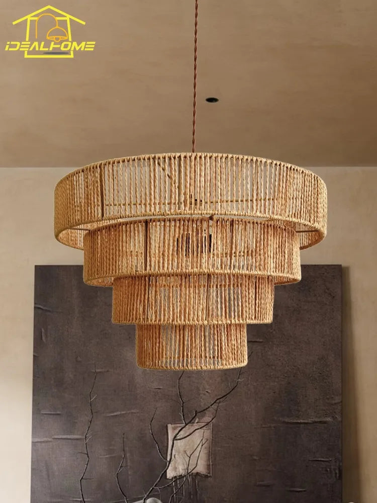 La suspension en corde de chanvre style wabi-sabi est bien plus qu'un simple luminaire ; c'est une pièce maîtresse qui apporte une touche de sophistication et d'élégance à votre intérieur. Conçue pour s'intégrer harmonieusement dans des espaces variés, ce luminaire saura sublimer votre salon, votre chambre, ou même votre salle à manger. Avec son design épuré et naturel, il incarne parfaitement l'esthétique japonaise qui valorise la beauté de l'imperfection et de la simplicité.